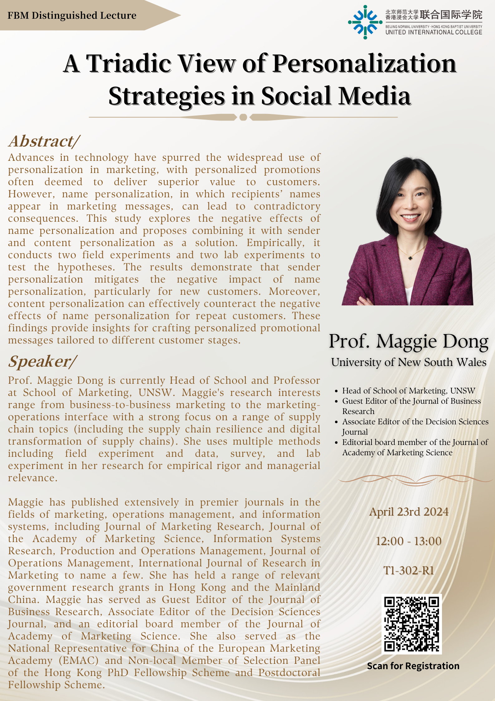 董婥嫣教授现任新南威尔士大学市场营销学院院长兼教授。董教授的研究兴趣范围包括B2B营销、市场营销与运营的联系,重点关注一系列供应链话题(包括供应链的弹性和供应链的数字化转型)。她在研究中采用多种方法,包括现场实验和数据、问卷调查和实验室实验,以确保实证研究的严谨性和管理的相关性。董教授在市场营销、运营管理和信息系统领域的顶级期刊上发表了大量论文,其中包括Journal of Marketing Research, Journal of the Academy of Marketing Science, Information Systems Research, Production and Operations Management, Journal of Operations Management, International Journal of Research in Marketing等。她曾在香港和中国大陆获得一系列相关的政府研究基金。Maggie 担任Journal of Business Research客座编辑、Decision Sciences Journal副主编和Journal of Academy of Marketing Science编委。她还曾担任欧洲市场营销学会(EMAC)中国国家代表,以及香港博士生和博士后奖学金计划遴选委员会的非本地成员。
