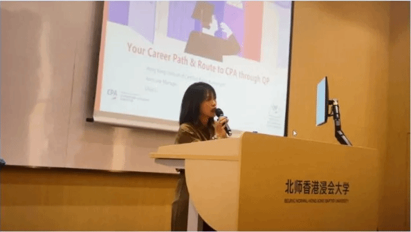 2025年9月18日晚,由工商管理学院会计系主办的《香港会计师公会QP助力BNBU学子会计菁英成功路》专题讲座在T2-101教室圆满举办。本次讲座时间为19:00至21:00,特邀香港会计师公会中国内地事务助理经理李莹女士担任主讲嘉宾,为同学们系统梳理了会计专业学生的职业发展方向、香港资本市场动态及HKICPA认证的专业价值。