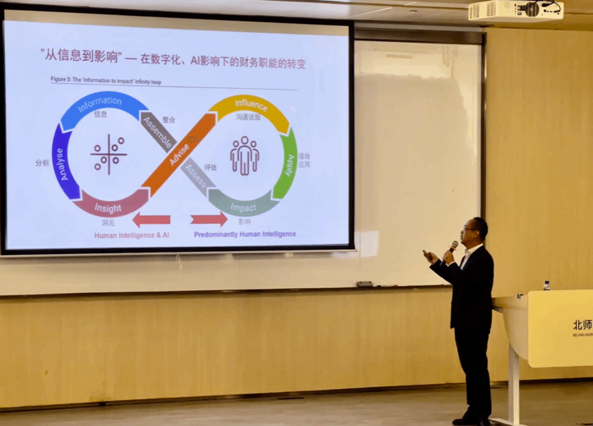 在讲座中,潘先生以“信息化、数字化背景下财务职能的转变”为主题,深入分析了财务工作正如何从传统核算,转向支持企业战略决策与价值创造。针对当前热门的人工智能(AI)与财务人员关系话题。潘先生强调AI不会取代财务岗位,而是为财务人员提供更高效的工具与更广阔的发展空间。未来的财务人才应善于运用AI和信息化系统进行数据分析、风险管理和绩效评估,成为企业战略中的重要支撑。