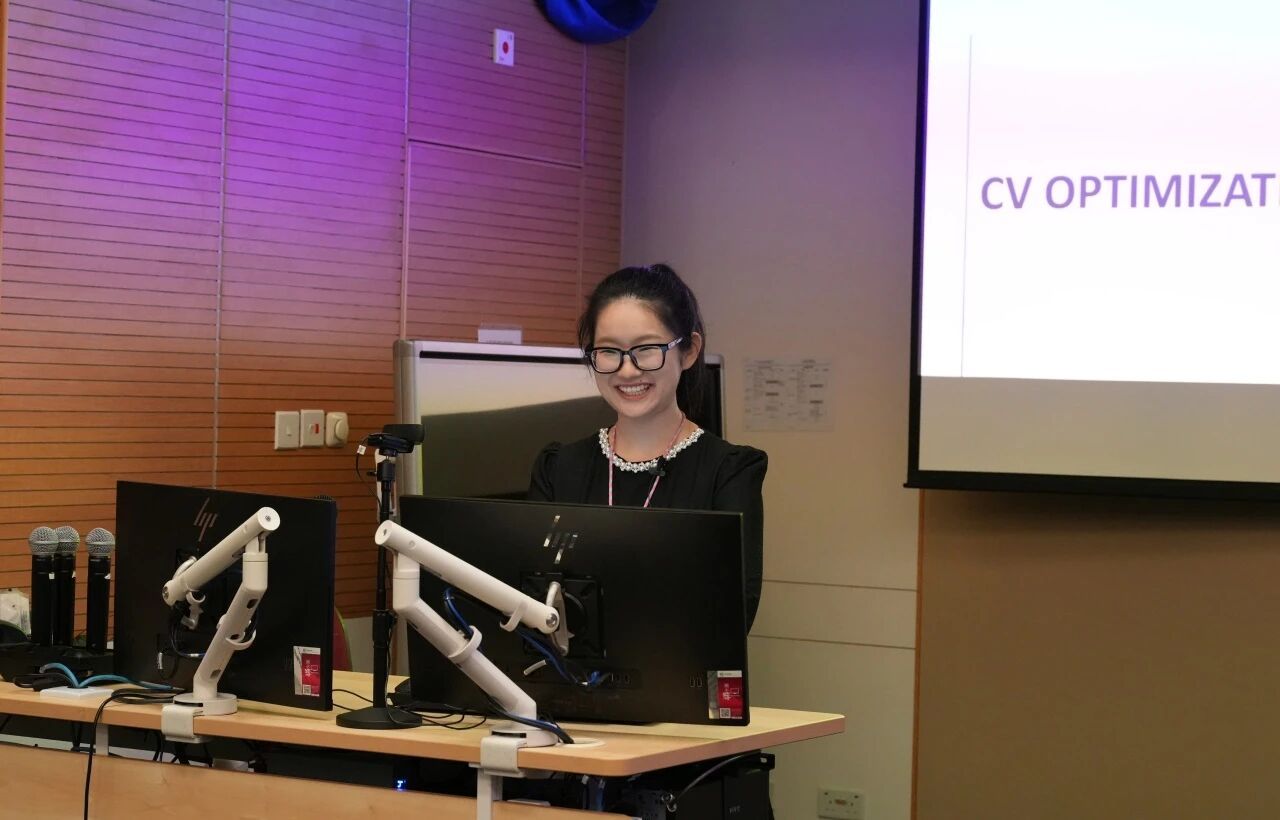 随后,香港浸会大学商学院职业发展与校友事务的负责老师向大家详细介绍了香港求职环境下的简历制作技巧。她通过诸多实际案例,讲解了ATS系统筛选的重要性以及HR在短时间内筛选简历时的关注点,如个人影响、态度、技能和知识等。并分享了内地与香港的求职渠道,如LinkedIn、JobsDB、boss直聘等,鼓励学生利用社交平台建立职业联系,长期维护个人形象。