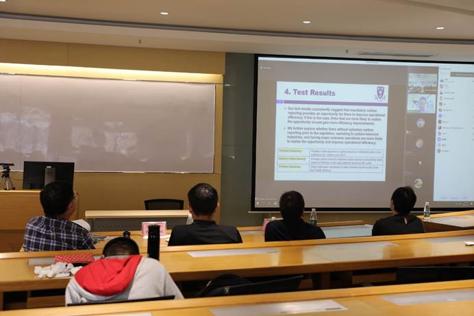 Prof. Lam介绍,本研究主要通过对英国公司的例证分析,探讨强制性碳排放信息披露与企业运营效率之间的关联与影响,具有一定的先进性。碳排放信息披露有助于发现创新机遇及运营低效的情况,但需要额外人手及资源。基于英国已推行碳排放披露制度逾10年,本研究选择英国市场中487家企业,采用双重差分法对强制性碳排放报告有效性进行研究。研究发现,强制碳排放公告对自愿披露信息、高碳排放行业、或拥有海外分支的企业均有显著正面影响。