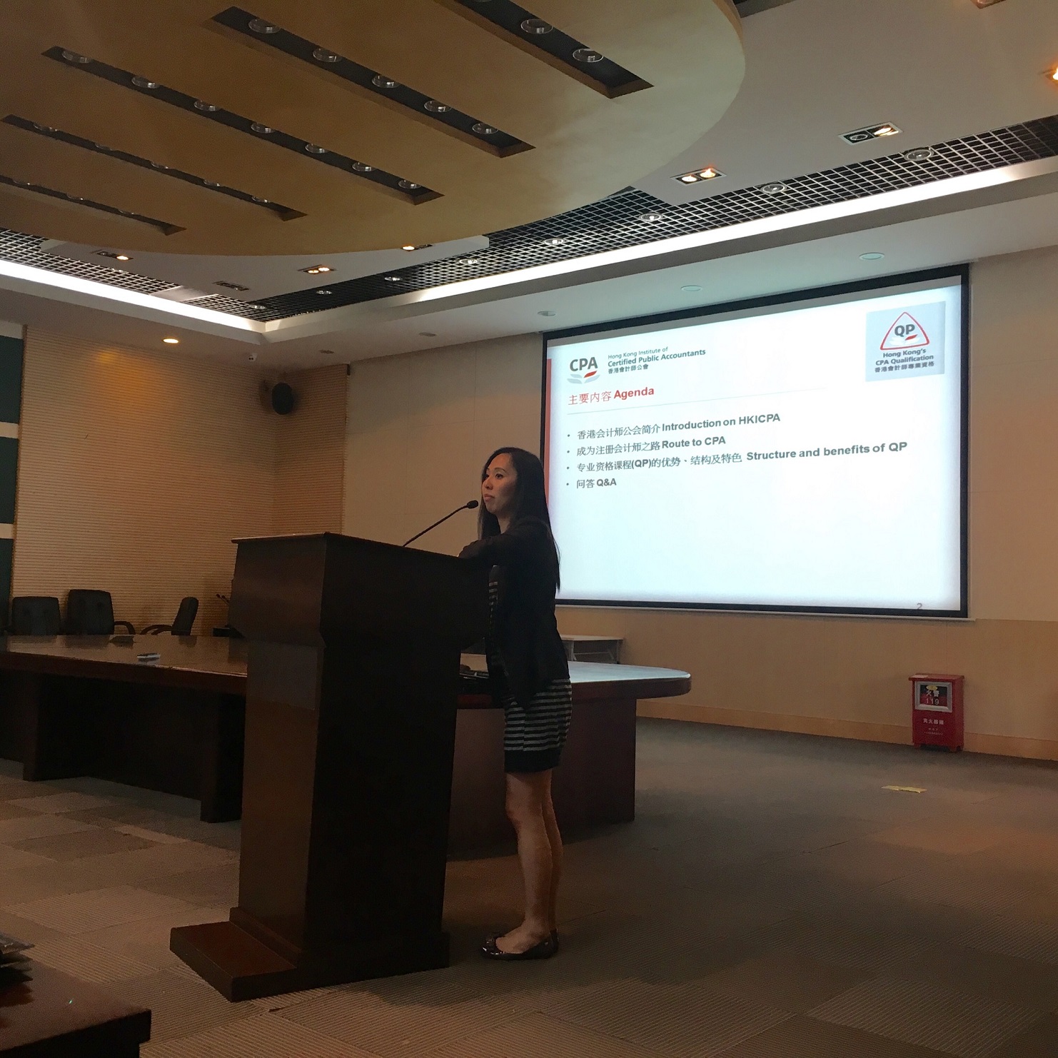 At the same time, Ms. Shelby Tai, Associate Director of Hong Kong Institute of Certified Public Accountants (HKICPA), gave a career and professional talk on the topic “Join a League of Its Own – Be a CPA”. The talk included an introduction on the HKICPA, how to become a CPA, the structure and benefits of the HKICPA Qualification Programme, and the upcoming activities of HKICPA.
