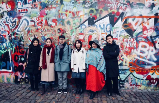 Liu Jialiang (third from left) and his classmates during a study tour in Vienna