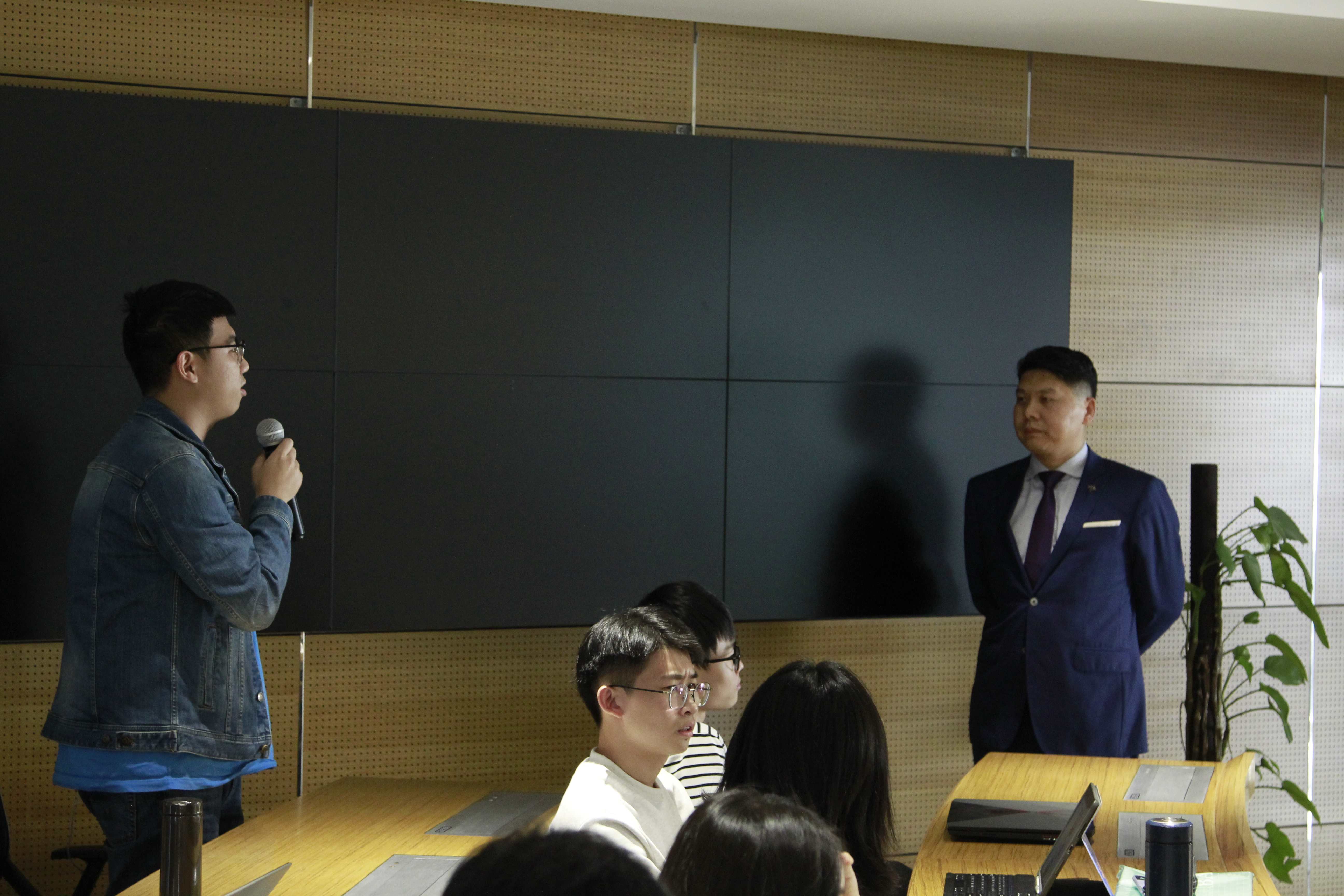 在讲座中,辛占华博士向在座的学生提问,如果一个新员工加入公司,让谁来当新员工的导师合适?是员工的上级领导,还是部门老员工,还是其他部门的老员工?通过这个问题,辛博士向大家讲述了企业架构的横向分工和纵向分权,也说明了企业要注重跨部门的沟通,从企业设立开始就要注重与员工的感情交流,文化建设。