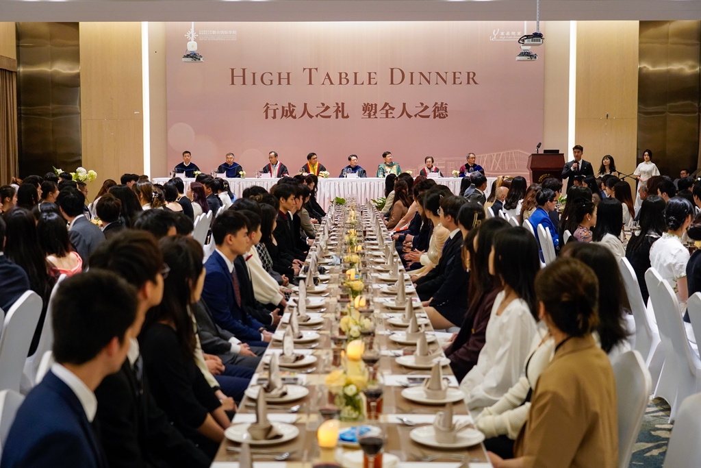 中国科学院院士、欧洲科学院院士、UIC校长汤涛教授出席高桌晚宴,与师生交流。工商管理学院院长刘文斌教授提到“高桌晚宴活动,使同学们潜移默化地学习了商务礼仪和餐桌礼仪,建立起对学校的归属感和荣誉感,对同学们大有裨益。”