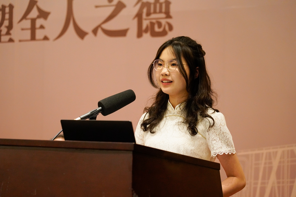 会计学专业2022级学生徐悦明在发言中谈到嘉宾分享的企业精神对她的触动。