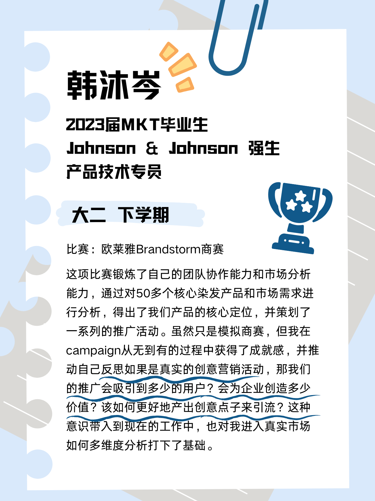 就业:韩沐岑,2023届市场营销管理(MKT)毕业生,Johnson & Johnson 强生 产品技术专员