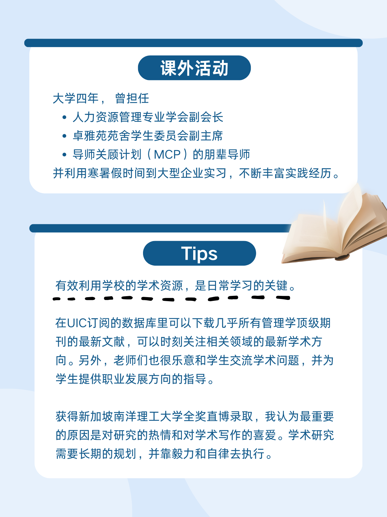 读博:冯叶菲,2023届人力资源管理(MHR)毕业生,南洋理工大学 全奖直博