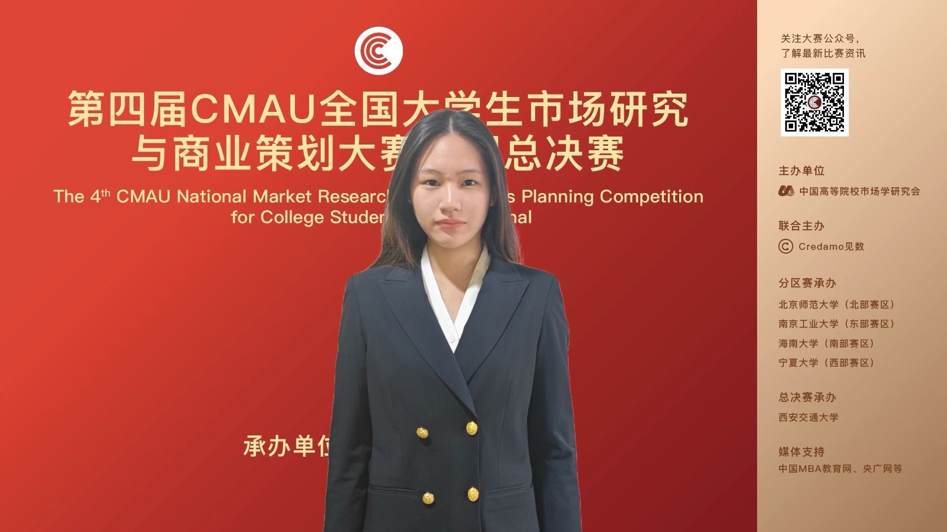 2025年6月15日,由中国高等院校市场学研究会与Credamo见数联合主办,西安交通大学承办的第四届CMAU全国大学生市场研究与商业策划大赛(以下简称“CMAU市策大赛”)全国总决赛顺利闭幕。本届大赛共有来自全国31个省、自治区、直辖市的32742人报名参赛,参赛院校508所,校赛阶段共有2881支团队成功提交参赛作品,最终推送108支团队晋级全国总决赛。我校共有28支团队报名参赛。经过校内赛、南部赛区决赛、全国总决赛,来自工商管理学院的GPS团队在全国近3000支队伍中突出重围,斩获全国总决赛一等奖。我校被授予“最佳组织奖”,工商管理学院管理系主任黄庆丰及数字媒体管理专业主任韦骁勇获得“优秀指导教师奖”。