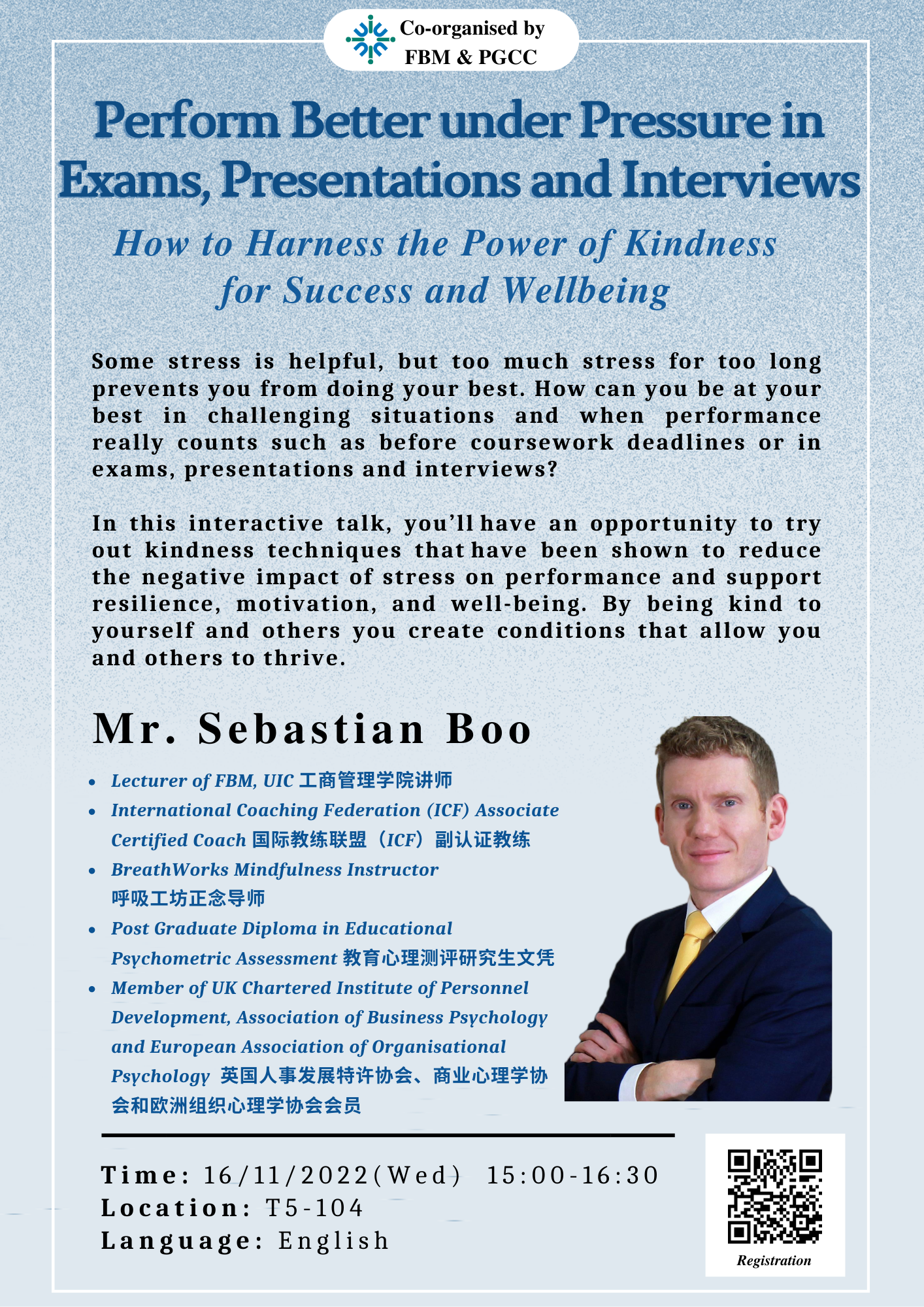 2022年11月16日 - FBM & PGCC Health and Wellness Talk - 轻松应对考试,演讲和面试压力:如何运用善良的力量来获取成功和幸福